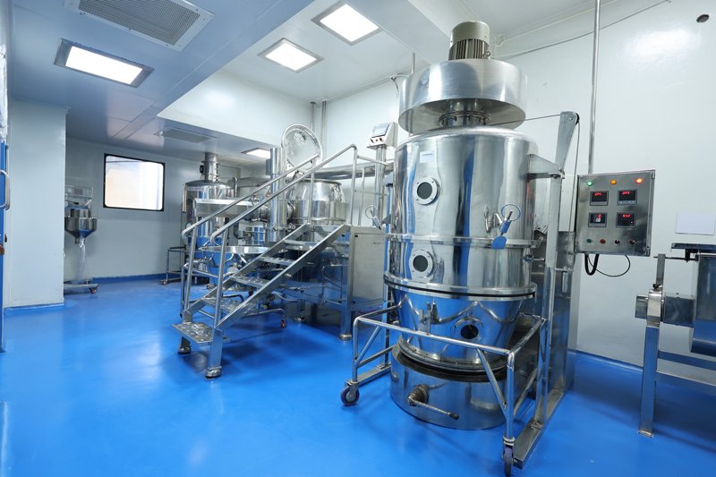 To maintain sterility, raw materials are dispensed in specialized booths using reverse laminar airflow, preventing contamination.Using advanced Rapid Mixer Granulator (RMG), the raw ingredients are processed into uniform granules for better compressibility.